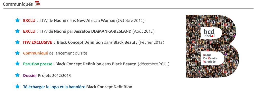 Black Concept Definition, Forces noires photographiées par BJL. Musée du Montparnasse, Paris, 2008Cent vingt photos couleur de BJL (artiste photographe, musicien et directeur artistique de Bcdlabel.com) sont exposées dans une mise en scène sans prétention pour donner toute l’attention aux visages et corps photographiés.